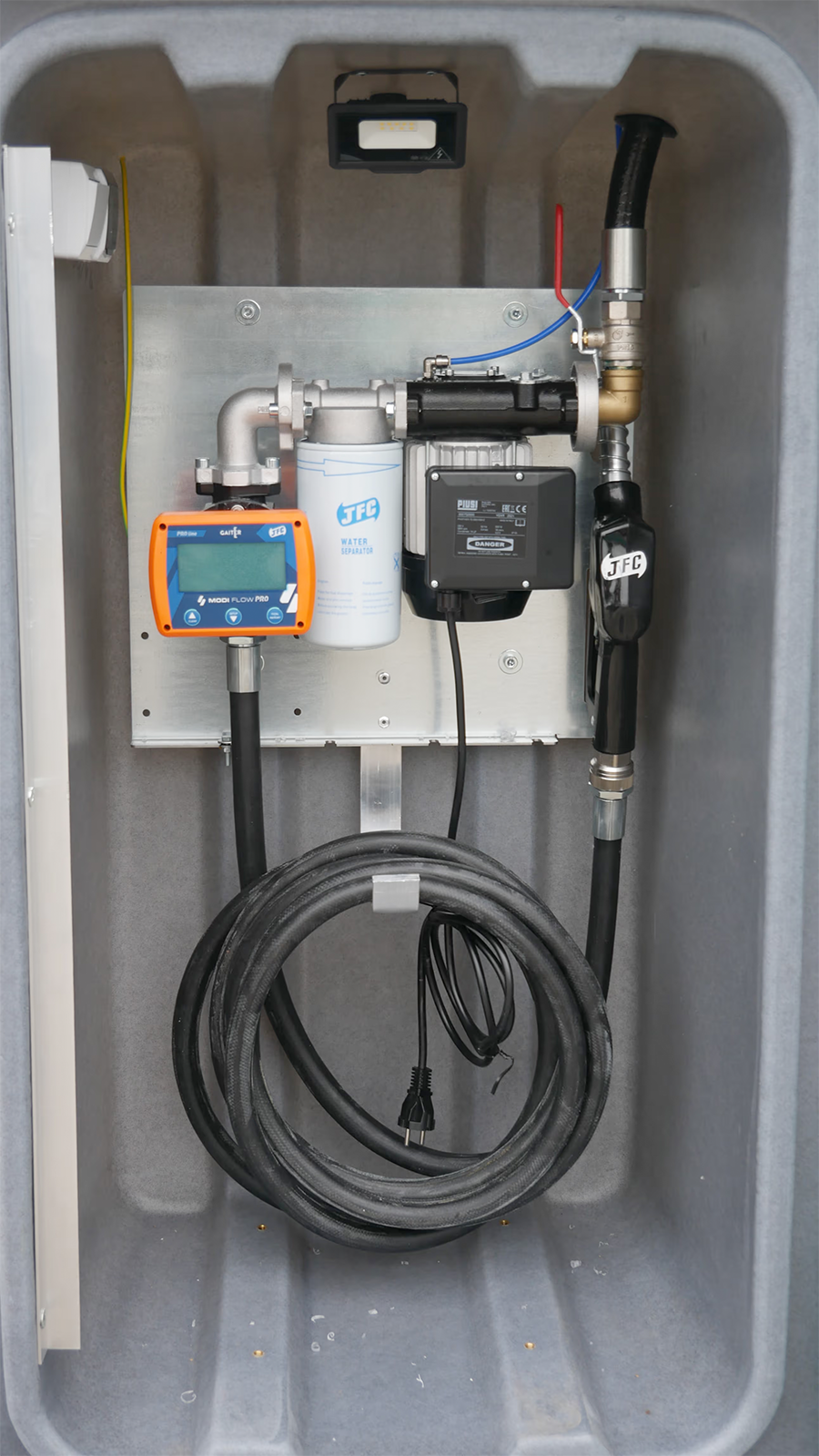 - Kraftstoffpumpe, Durchsatz 79 l/min, Versorgung 230 V