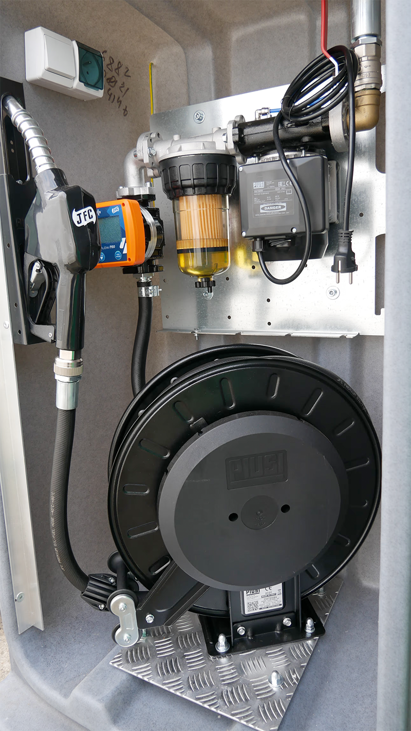 Alle Leitungen, Ventile und technischen Komponenten – wie Pumpe, Schlauch oder Zapfpistole – müssen innerhalb des Sicherheitsbereichs des Außenmantels oder in einem speziell konstruierten Schutzsystem installiert werden. Diese Bauweise verhindert zuverlässig, dass Kraftstoff in den Boden gelangen kann.