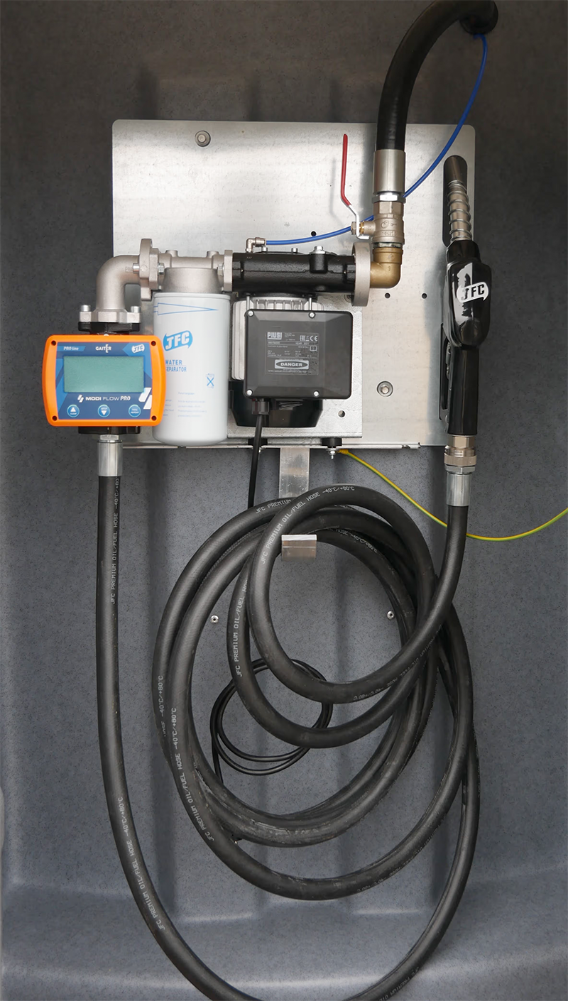 Stationärer JFC 5000 Duo Tank mit einem Fassungsvermögen von 5000 Litern. Optimale Lösung zur Lagerung und internen Verteilung von Dieselkraftstoff.